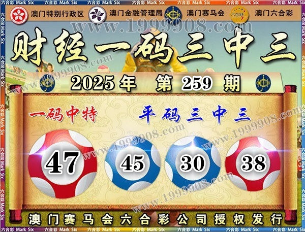 259期开奖结果:08-38-30-45-09-42 特码47
