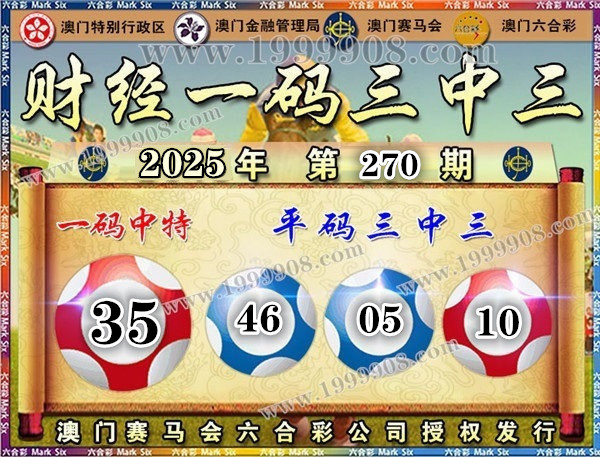 270期开奖结果:05-11-31-46-03-10 特码35