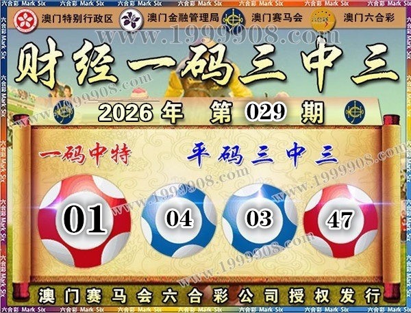 029期开奖结果:47-08-05-04-03-18 特码01