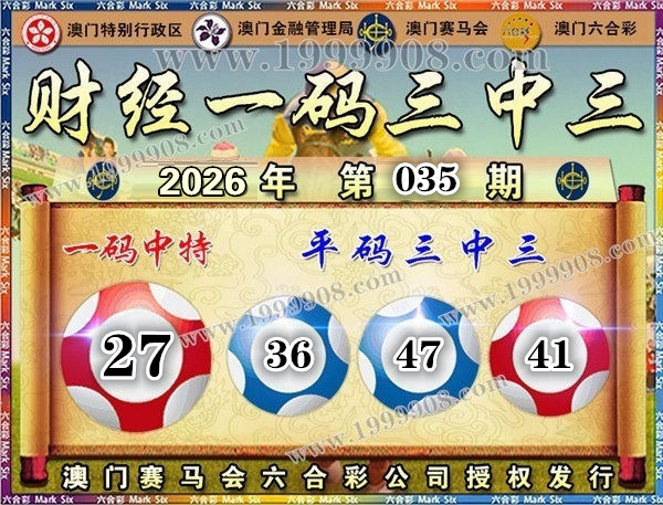 030期开奖结果:03-06-47-01-35-04 特码41