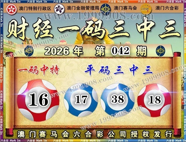 042期开奖结果:38-22-17-19-01-18 特码16