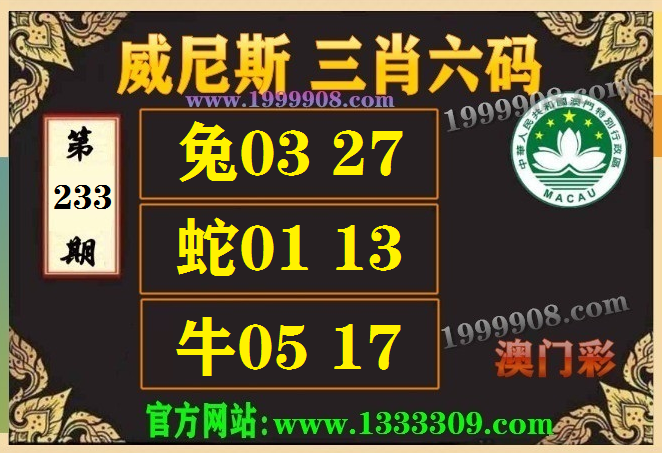 233期:(威尼斯三肖六码【兔03.27、蛇01.13、牛05.17