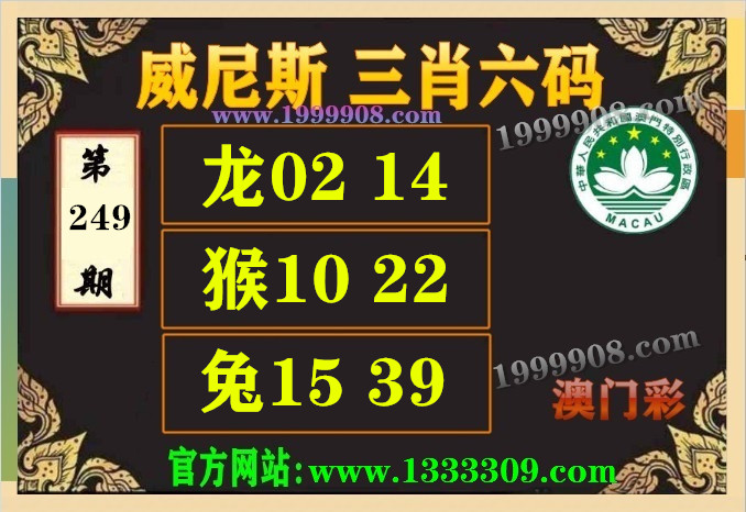 249期:(威尼斯三肖六码【龙02.14、猴10.22、兔15.39