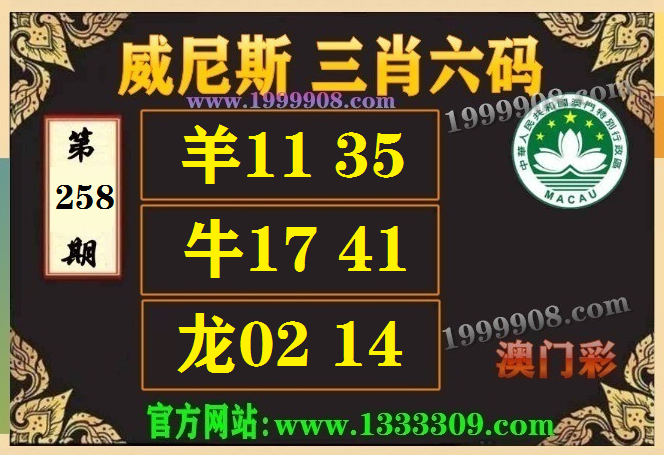258期:(威尼斯三肖六码【羊11.35、牛17.41、龙02.14