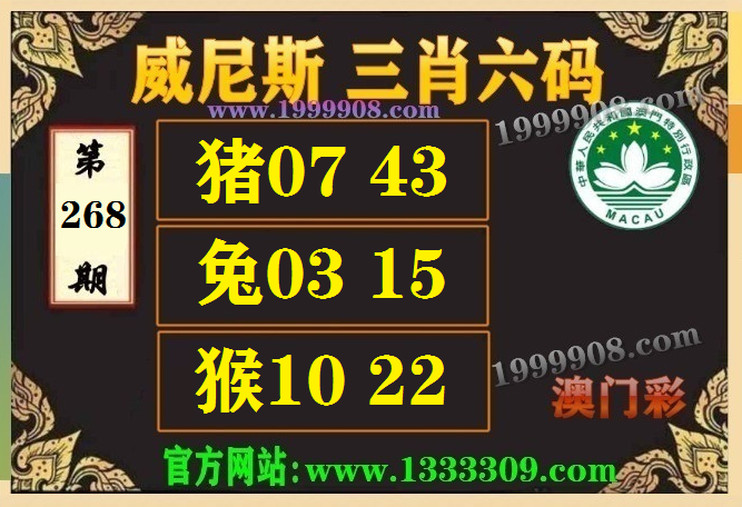 268期:(威尼斯三肖六码【猪07.43、兔03.15、猴10.22