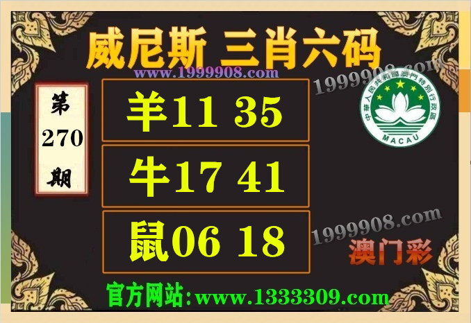 270期:(威尼斯三肖六码【羊11.35、牛17.41、鼠06.18