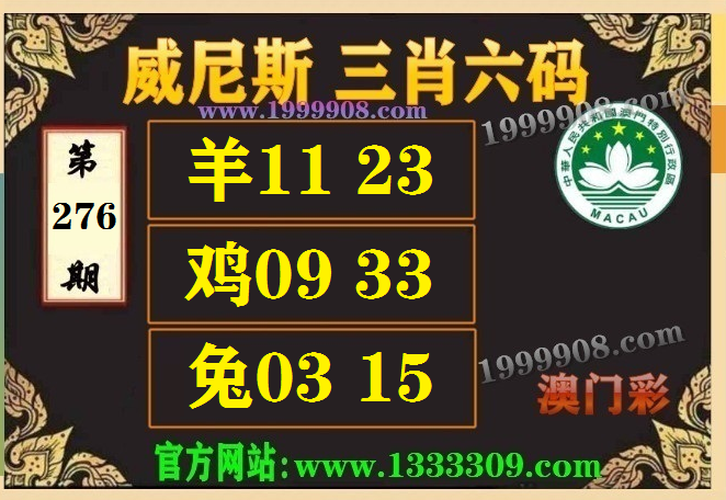 276期:(威尼斯三肖六码【羊11.23、鸡09.33、兔03.15
