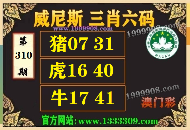 310期:(威尼斯三肖六码【猪07.31、虎16.40、牛17.41