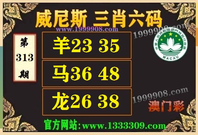313期:(威尼斯三肖六码【羊23.35、马36.48、龙26.38