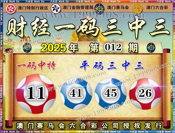 012期开奖结果:25-26-33-20-41-45 特码11