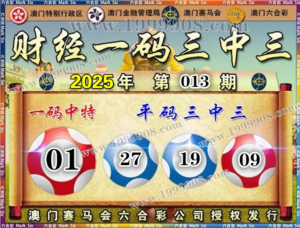 013期开奖结果:09-19-44-27-37-06 特码01