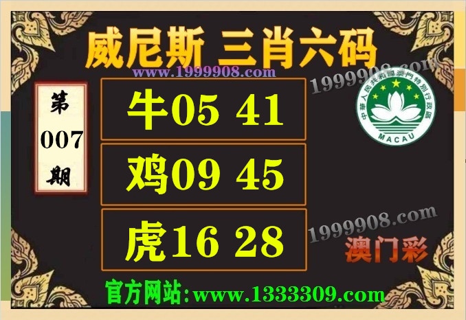007期:(威尼斯三肖六码【牛05.41、鸡09.45、虎16.28
