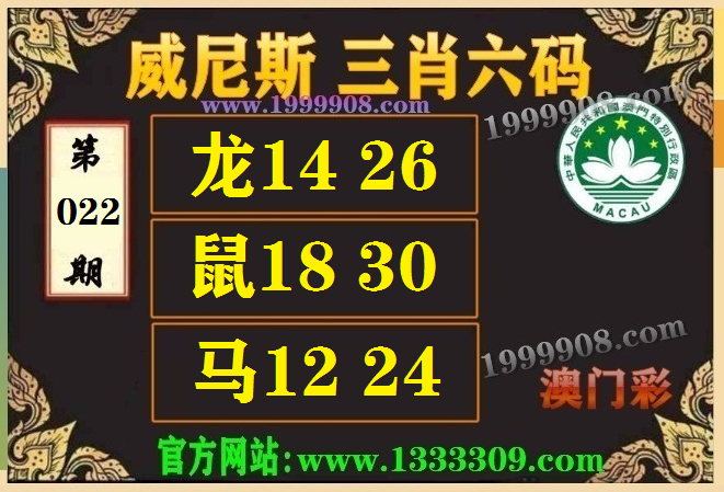 022期:(威尼斯三肖六码【龙14.26、鼠18.30、马12.24