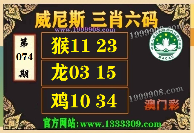 074期:(威尼斯三肖六码【猴11.23、龙03.15、鸡10.34