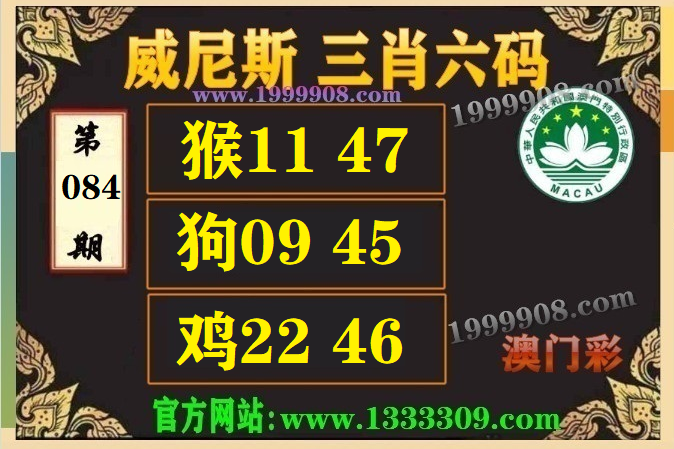 084期:(威尼斯三肖六码【猴11.47、狗09.45、鸡22.46
